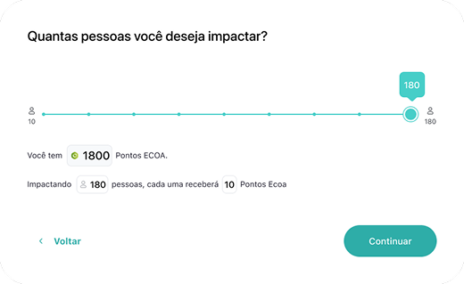 A cada pessoa impactada, uma quantidade de Pontos ECOA será entregue como recompensa, incentivando atenção real e engajamento genuíno.