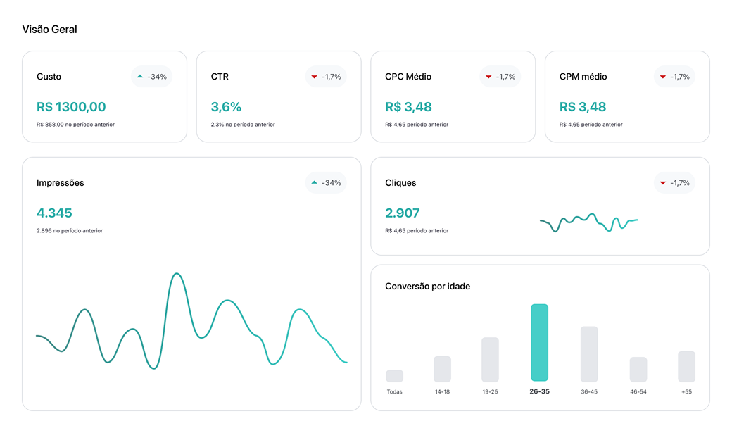 Acompanhe o desempenho do seu anúncio em tempo real com dados claros e completos, do engajamento à geração de impacto sustentável.